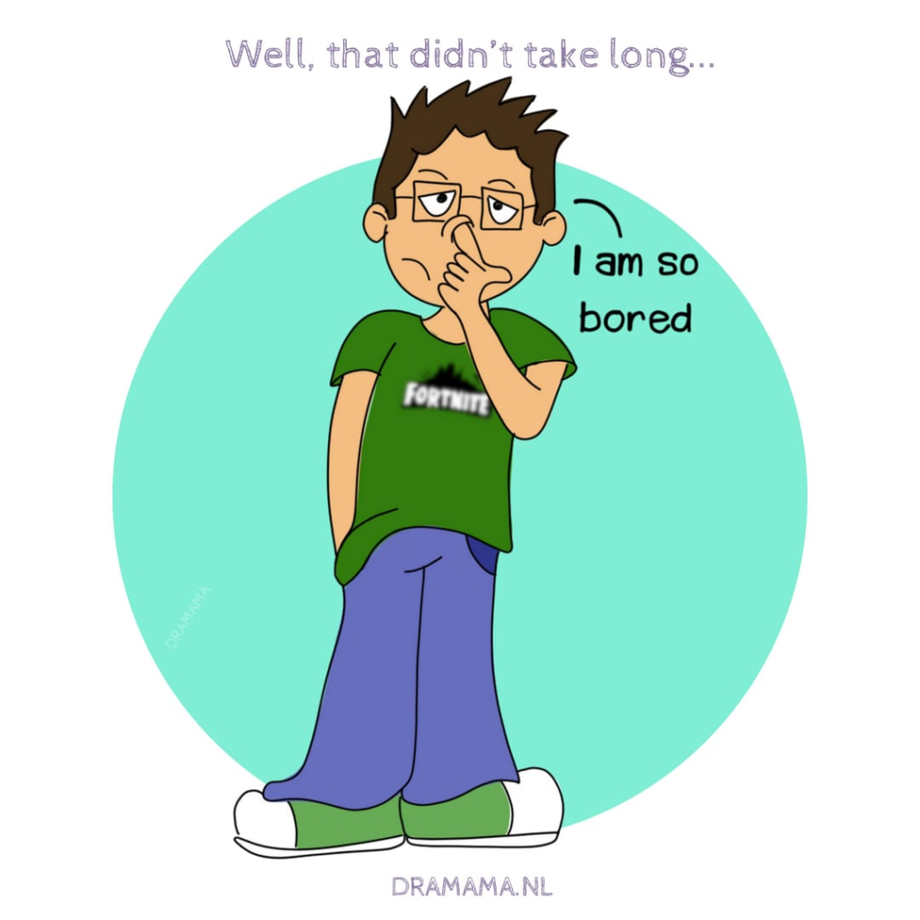 Een groot dilemma waar wij mee te maken hebben is verveling. Iets wat ik positief zou moeten benaderen. Sla de opvoedboekjes er maar op na, ze zeggen allemaal hetzelfde: Verveling is goed voor kinderen. Voor volwassenen ook, trouwens. We vervelen ons tegenwoordig veel te weinig volgens deskundigen. We vinden dat we constant prikkels nodig hebben en die krijgen we ook, met name door smartphone en tablets. Maar ons een tijdje vervelen is juist goed: hier worden we creatief van, en zo komen we tot nieuwe activiteiten.
